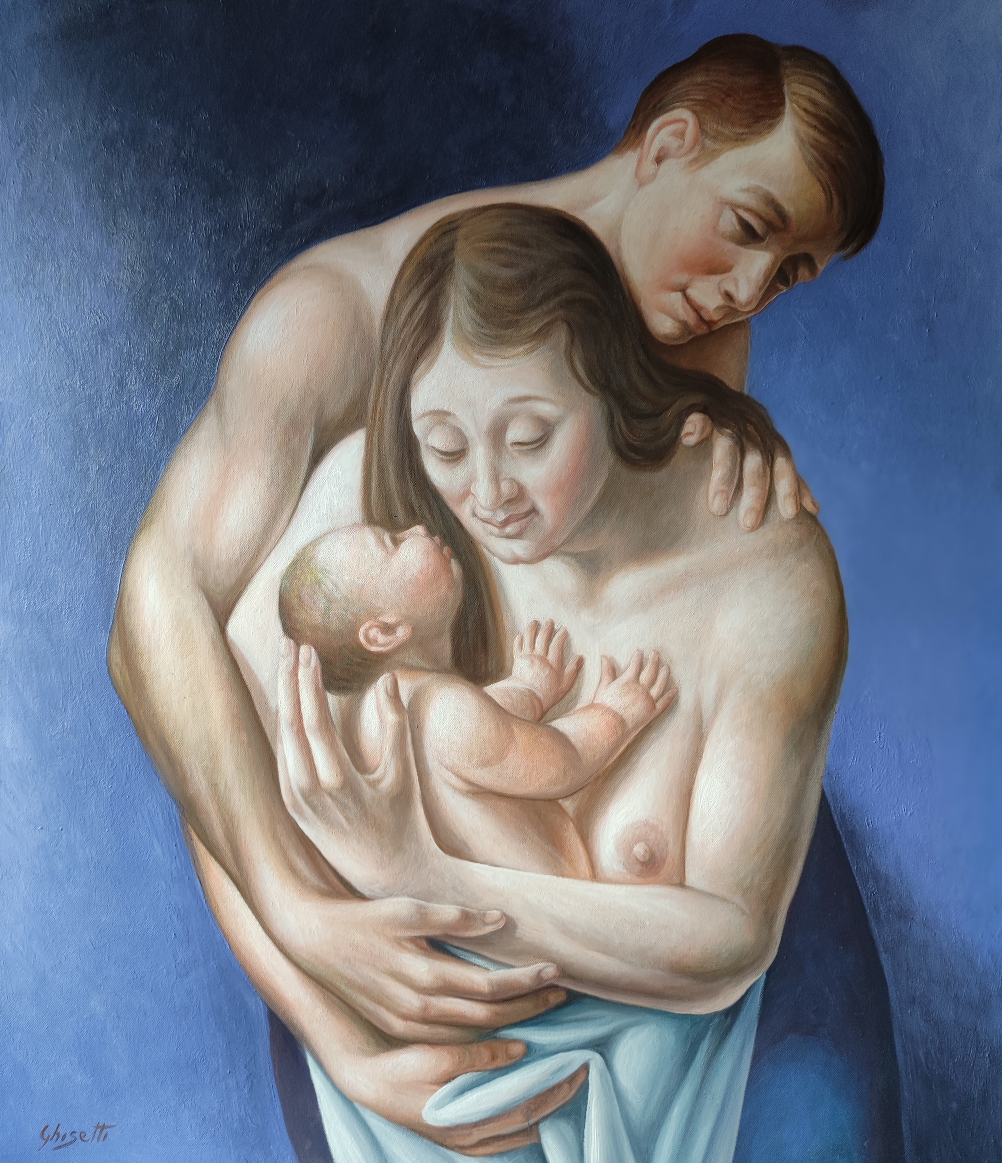And at this point, it is worth looking at the same theme that he faced many years ago. Then it was to summon the imperturbability of a moment, the serenity of the child who feeds on the mother's breast. Seeing in the iconography a set of meanings and contents close to the "Madonna with child" of the fifteenth century rather than relevant to the " color irregularities and cubist decompressions of the latest research.
